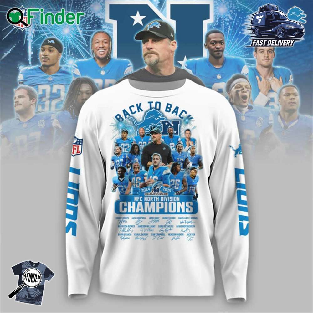 Detroit Lions Back To Back 2024 2025 Nfc North Division Champions White T-shirt Hoodie