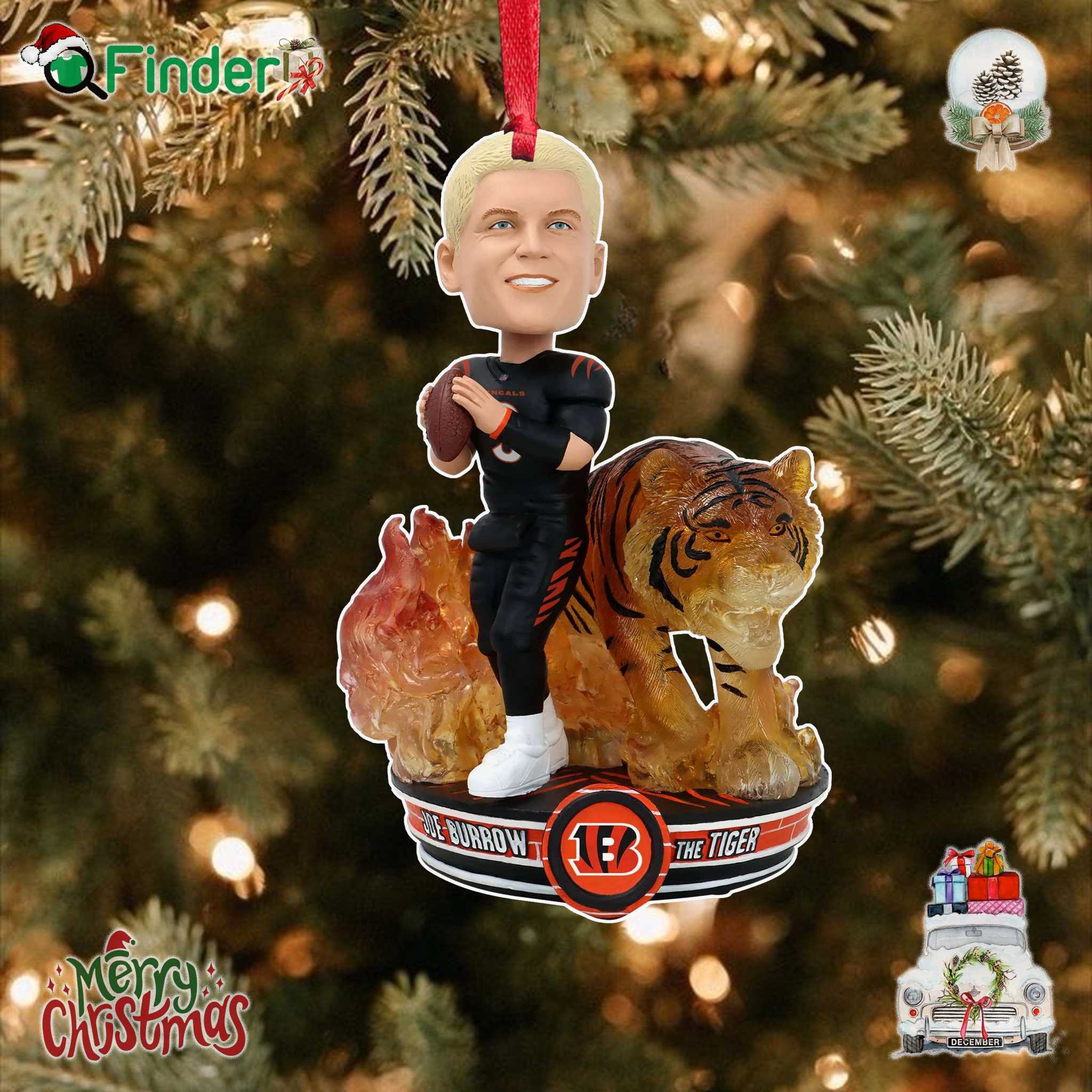 Beyond its aesthetic appeal, this ornament represents a deeper connection to the Cincinnati Bengals community. It showcases a mutual bond among fans united by their unwavering support for Burrow and the team, celebrating both individual talent and collective spirit. Every scratch or scratch, every frayed edge, tells a story of dedication, representing the fearlessness with which Burrow faces his opponents, much like a tiger prowling through the jungle. This ornament serves as a reminder to harness that inner strength—a spark that ignites the will to overcome challenges, whether on the field or in life. It stands as a symbol of loyalty, passion, and the relentless pursuit of greatness, all wrapped in the spirit of one man’s journey and the heart of a city that echoes his roar.